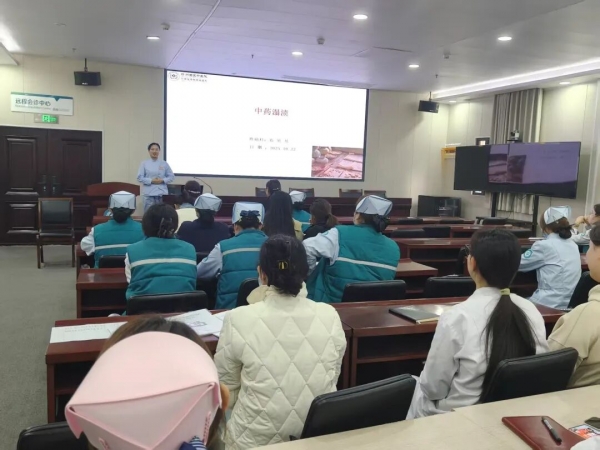 随后,培训重点聚焦于深受群众欢迎的中医护理适宜技术——“中药热奄包”与“中药塌渍”疗法。外二科护士长张洁详细讲解了中药热奄包”温经通络、行气活血、祛湿散寒的作用原理,并特别强调了操作中的禁忌症、温度把控及防止烫伤等关键注意事项。外二科护理培训师时尚现场演示了热奄包实际规范应用手法,让抽象的理论变得直观可感。