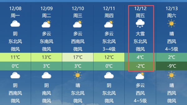 41 浏览12月8日,周一。一条来自气象部门的消息引发了大家的普遍关注:打开中央气象台以及多个主流气象软件,在最新的天气预报中,本周五(12月12日),郑州的天气一栏被明确标注为“大雪”。