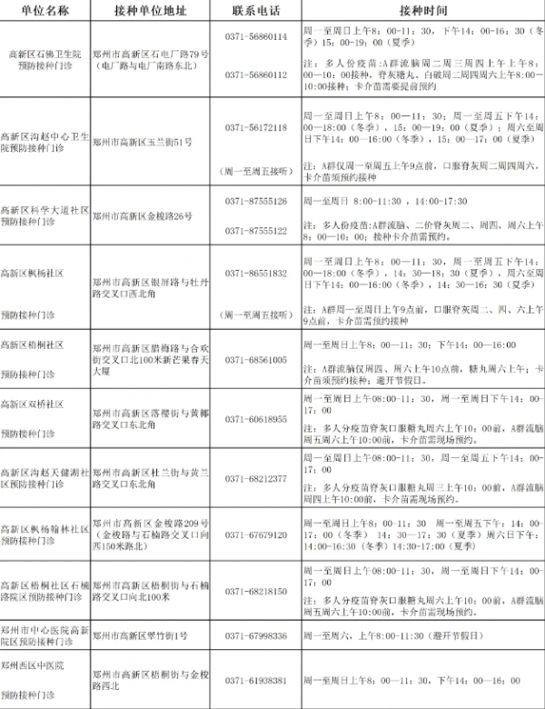 附:高新区各预防接种单位地址及联系方式