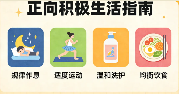 尽量在晚上11点前入睡,保证7-8小时优质睡眠;每日进行30分钟左右的适度运动,如快走、瑜伽,能有效缓解压力,平稳激素水平。