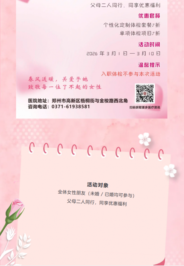 三八女神节——郑州西区中医中医院健康体检专属礼