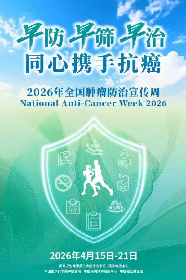 2026年4月15日—21日是第32个全国肿瘤防治宣传周,主题为“早防早筛早治,同心携手抗癌”。国家卫健委强调,要将防治关口前移,聚焦高危人群筛查,从源头降低癌症发病率。面对我国每年新发癌症超400万例的严峻形势,每个人都应做自己健康的第一责任人。
